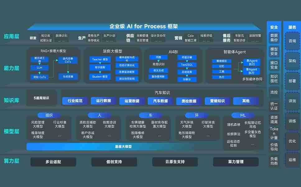 端到端的一站式AI工作空间深度融合了从企业战略规划到日常经营的全流程业务板块,,定向解决车企内部领域多、、、部门多、、、、链条长、、、场景碎片化等难题,,,支持车企快速构建以AI为核心的生产力写作体系,,实现任务执行与AI能力的无缝集成与交互